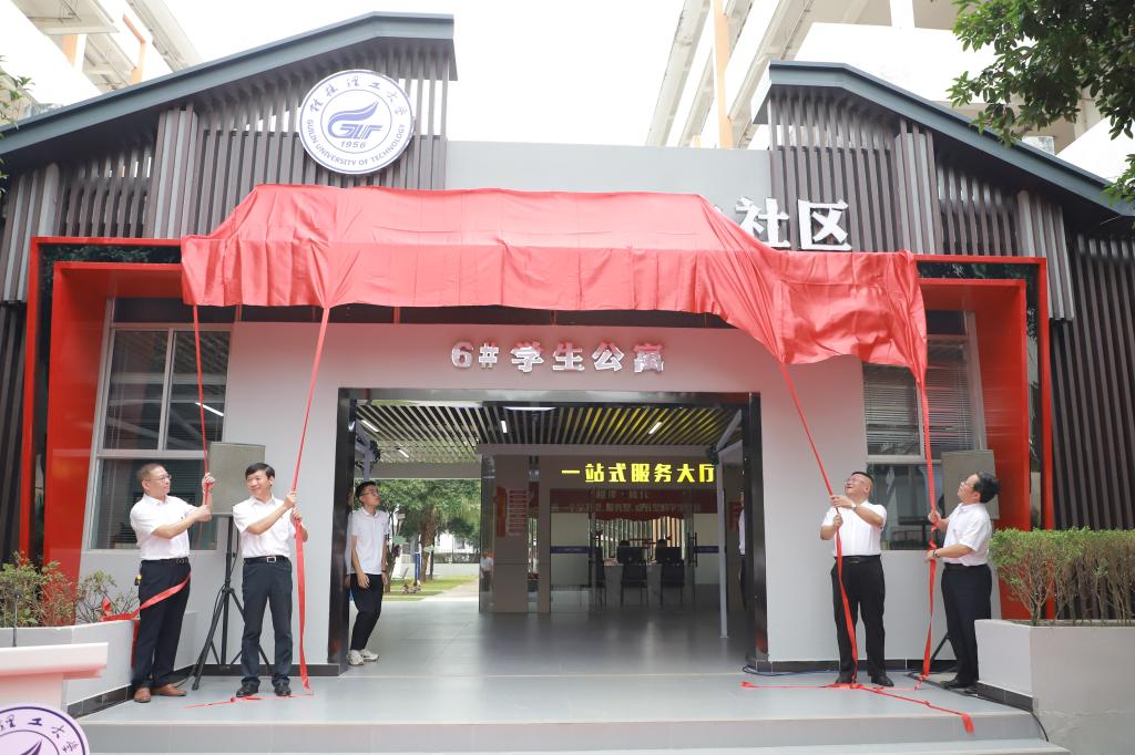 党委书记姜子亮共同为明园“一站式”学生社区揭牌,邓军、解庆林、吴志强为首批入驻队伍(党团活动室、思政大讲堂、一站式服务大厅、罗盘领航职业生涯工作坊、心理咨询工作坊、学业发展中心)授牌并参观走访了明园“一站式”学生社区。据悉,学校自2020年全面启动雁山校区二号组团学生宿舍楼栋示范点建设以来,积极打造“一核多元、横向到边、纵向到底”的新时代“一站式”学生社区综合管理新模式,围绕立德树人根本任务,深入开展“一站式”学生社区综合管理模式建设的新探索。2021年11月,自治区教育厅公布首批全区高校“一站式”学生社区综合管理模式建设试点高校名单,我校成功入选。明园“一站式”学生社区经过近一年的精心筹备,在原有活动场地的基础上进一步升级改造,集成了党团活动室、思政大讲堂、罗盘领航职业生涯工作坊、心理咨询工作坊、学业发展中心、辅导员驻楼工作室、学生事务办理一站式服务大厅、共享厨房等场所和功能。