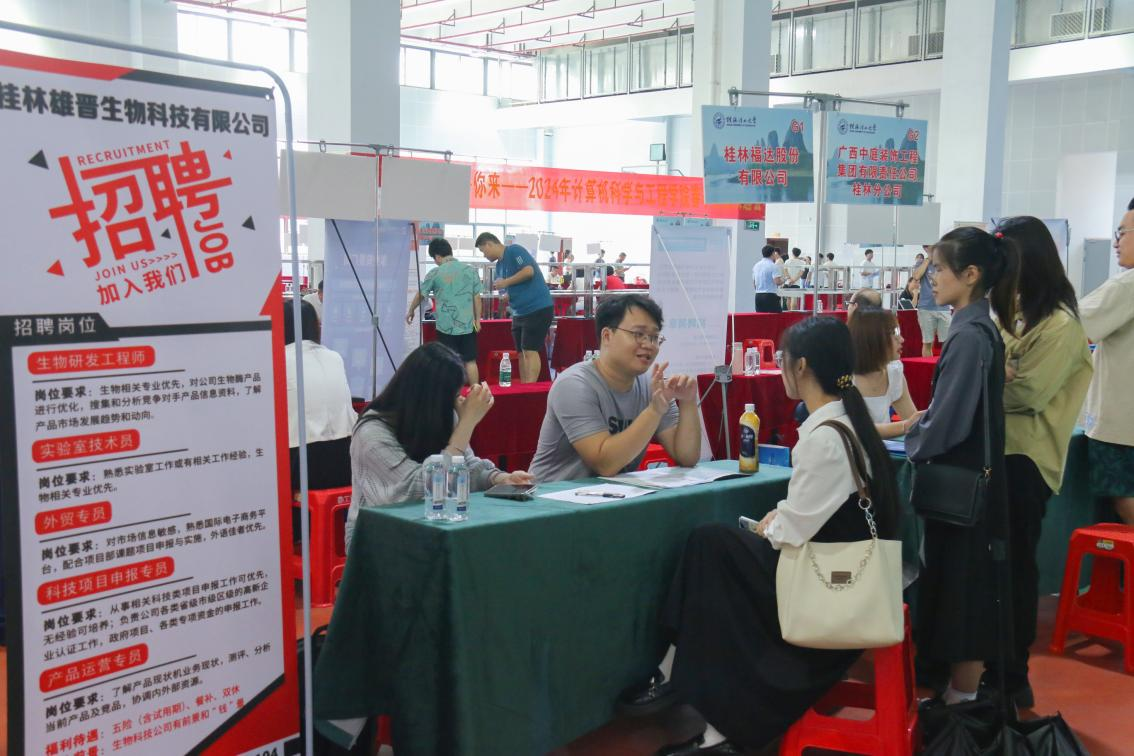 、化学与生物工程学院、计算机科学与工程学院共同承办的我校2024届毕业生“百日冲刺促就业”专项行动暨2025届毕业生实习专场招聘会在雁山校区新体育馆隆重举办,本次招聘会吸引近百家来自全国各地的企业到场参会,提供招聘岗位3000余个。
