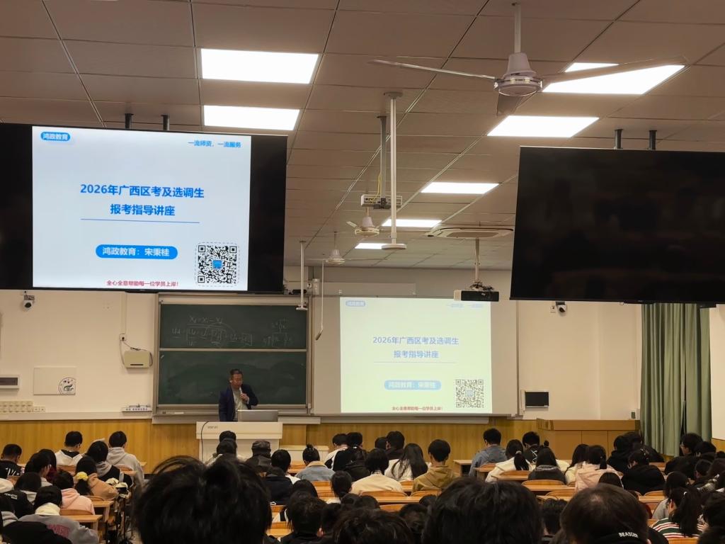 学子明晰公务员考试方向,提升备考能力与应试竞争力,11月30日晚,学院在雁山校区06408教室开展2026届毕业生考公专题培训讲座。学院邀请鸿政教育公司宋秉桂老师担任主讲,毕业班辅导员及全体2026届毕业生参加讲座。